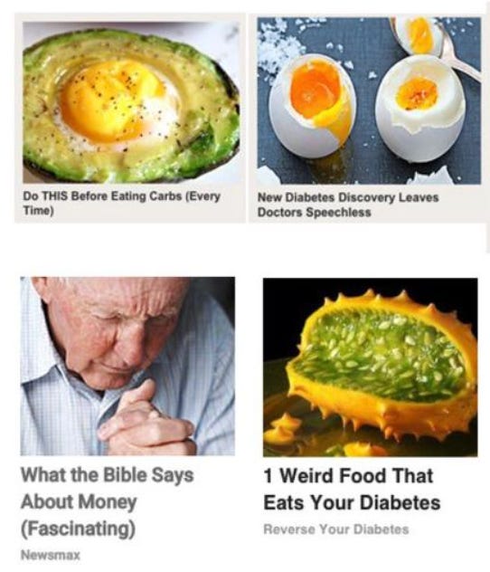 “promise easy solutions to complex medical or financial problems, use sensationalist language like ‘one weird trick’ and ‘Prepare to be shocked!’ or allege that the government or powerful industries ‘don’t want you to know’ about their products.”
