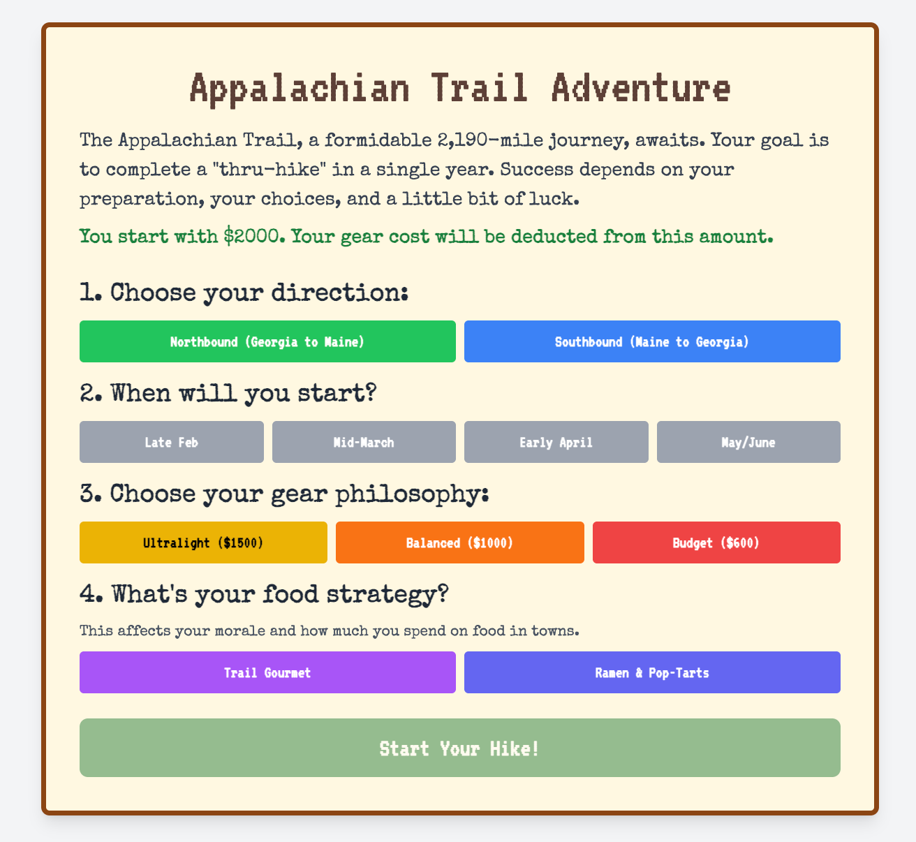 But are those the only value propositions here? I got to thinking about the Oregon Trail game, which, if you’re of a certain age and came through the American education system, you’ll instantly remember. It’s not hard to recreate an Oregon Trail look and feel via vibe-coding without even mentioning it. Here’s an “Appalachian Trail Adventure” game Gemini created for me that’s very Oregon Trail-ish, minus the hunting wild game part (it’s probably frowned upon on the trail). But it’s actually pretty cool - you get to choose your options which end up affecting your gameplay: